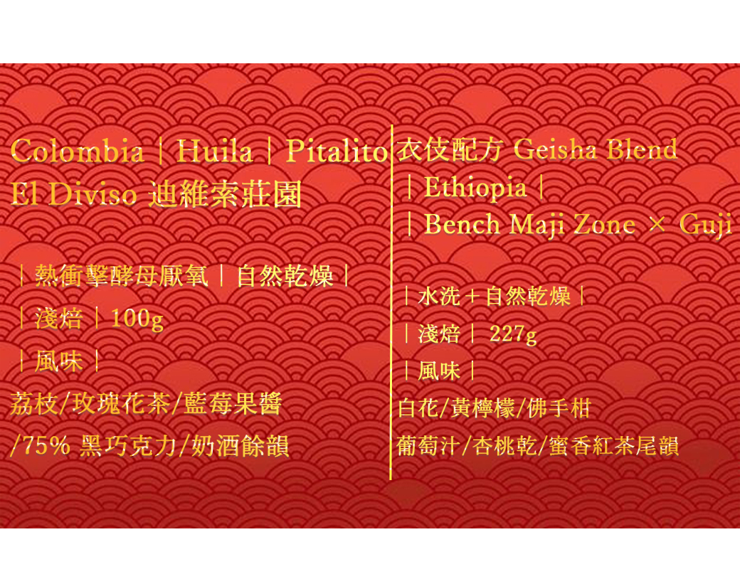 選用衣索比亞 Bench Maji 與 Guji 兩大產區,結合水洗的乾淨花香與自然乾燥的果甜